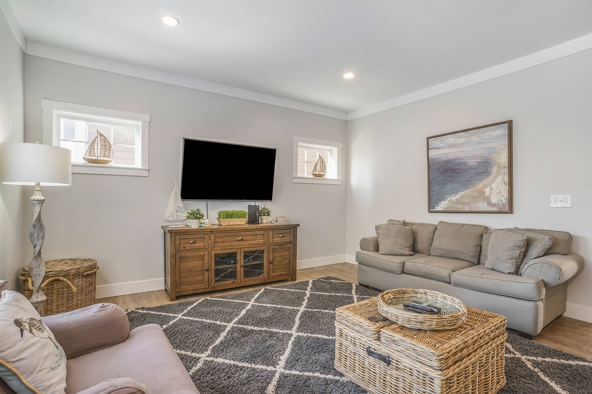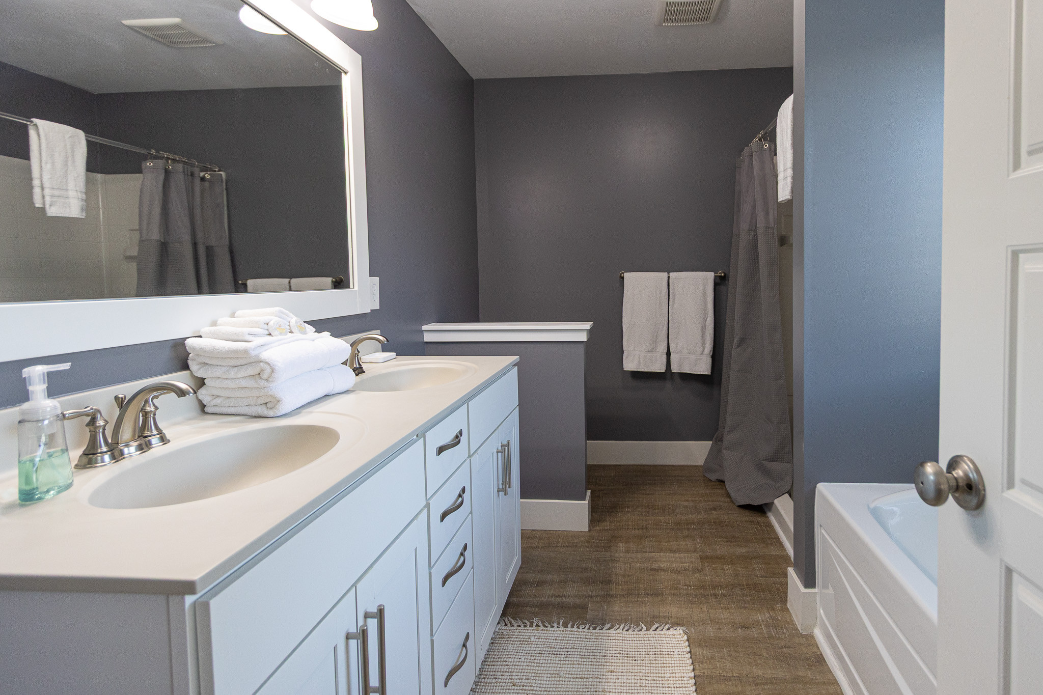 Northside Retreat boasts 4 Large Smart TV's (in both upstairs and downstairs common areas, Master Bedroom, and downstairs queen). All rooms have plush hybrid mattress and ample closet space.Enjoy privacy in the main level bedroom suite which features a king bed and full private bathroom. On the homes second level, everyone else sleeps comfortably! Here, you will find two queen bedrooms as well as a bunk guest room with 2 bunk beds (4 twins). The double sink vanity in the second floor guest bathroom offers ample storage space. An upper level master suite includes a full private bathroom with a large stand up shower and expansive walk-in closet. Hang out in the lower level basement area and play foosball, or watch TV on the huge bean bag and sofa! The flexible lay out of the home gives yet another bedroom and full bath on this level and allows the home to sleep up to 16 guests. If a second living room is required in the name of space, this home has that too. Choose the living room or grand room area, and enjoy one another's company in either of these gathering areas.