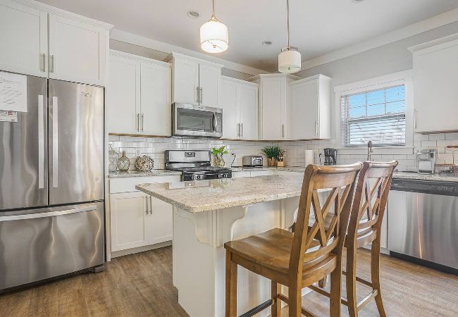 The modern Northside Retreat cottage offers amenities, decor and open concept floor plan make for a perfect large group getaway. Comfortable, quality furnishings compliment the newly contstructed home. Enjoy meal times in the fully equipped, open kitchen. White cabinets, stainless steel appliances and gorgeous countertops are pleasing to the eye and durable when spending a night in to cook up something savory. A central kitchen island provides additional seating space. Relax and vacation in this home at the living room fireplace, gas BBQ grill, or on the private patio. The cottage also has Smart TV'S throughout, Xfinity wifi, back patio, central A/C - Heat, washer/dryer, and plenty of linens.