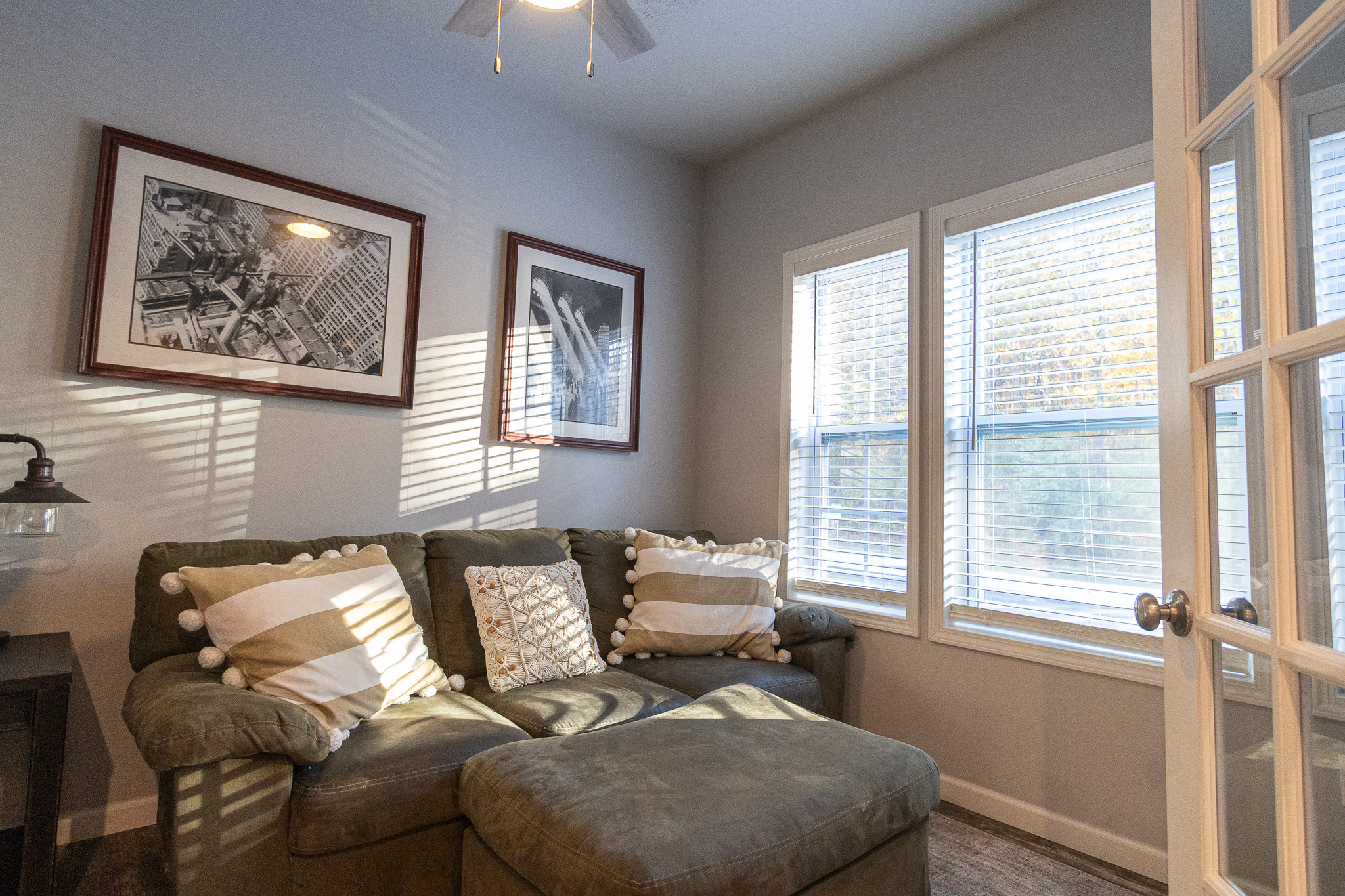 The upper level of the home has a spacious master suite with a plush king mattress awaiting your stay. Huge flat screen TV, seating for 2, full private bathroom, and walk in closet are also perks of this modern home's suite room. Two queen guest rooms, along with a double twin bunk room are sure to sleep up to eight more guests in luxurious comfort. Find a queen sofa sleeper in the lower level den - perfect for late night gatherings, or an additional sleeping space.